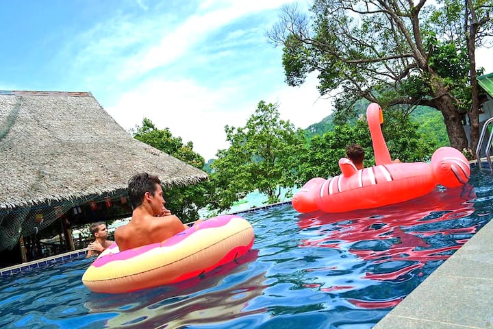 זה בין המקומות היחידים באזור עם בריכה.