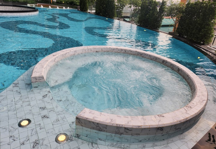 נופש מודרני עם חדר שינה אחד • ללא רבב • בריכת שחייה בסגנון אתר נופש