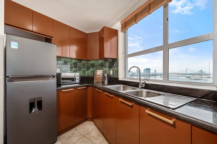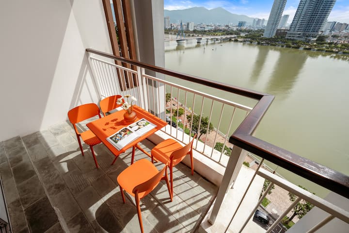 Han Riverside 2BR דירה עם בריכה | 2 דקות לשוק Han