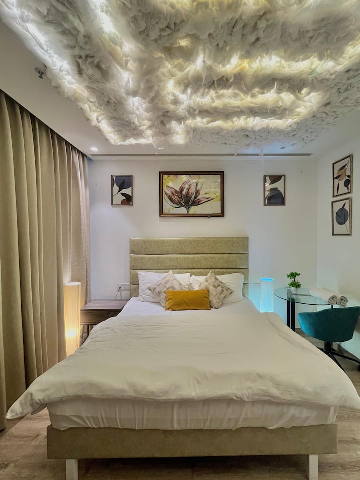 דירה חמודה ומעוצבת בקפידה בגודל 500 רגל רבוע היא חגיגה של פשטות, אור ומרחבים. עיצוב פנים מינימליסטי - כל מה שצריך, שום דבר שאתם לא צריכים. קווים נקיים, מרקמים חמים וצבעים מרגיעים יוצרים תחושה של שלווה ברגע שאתם נכנסים.