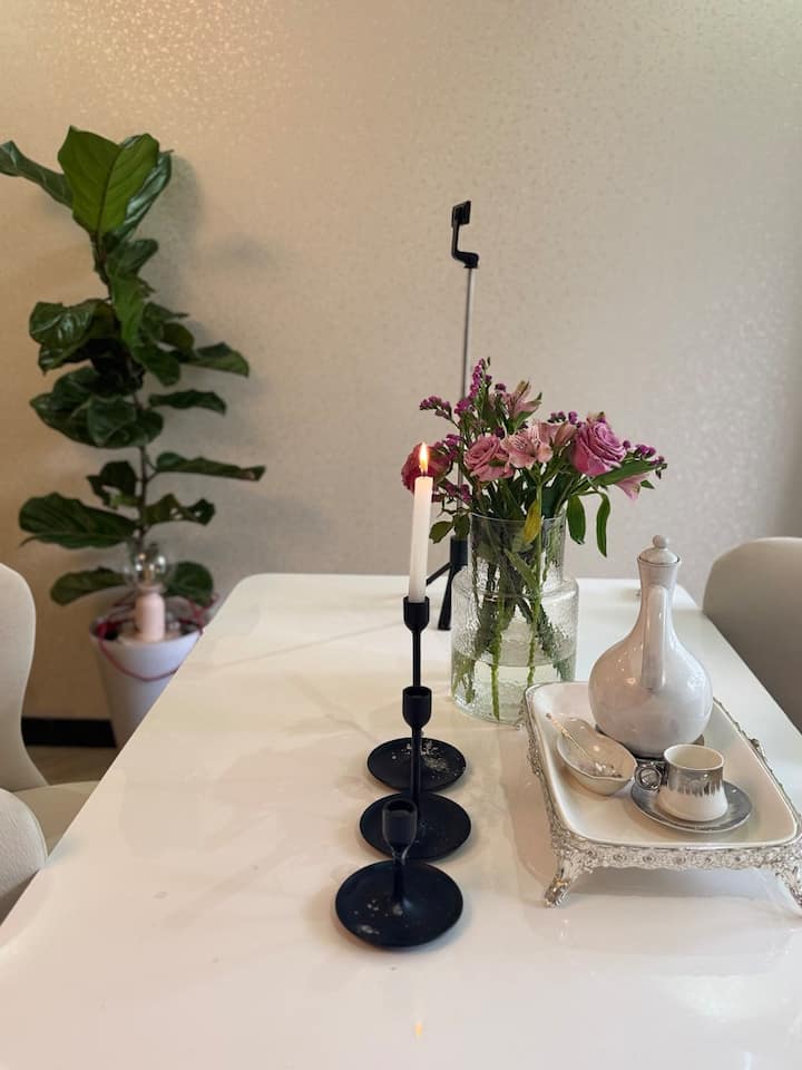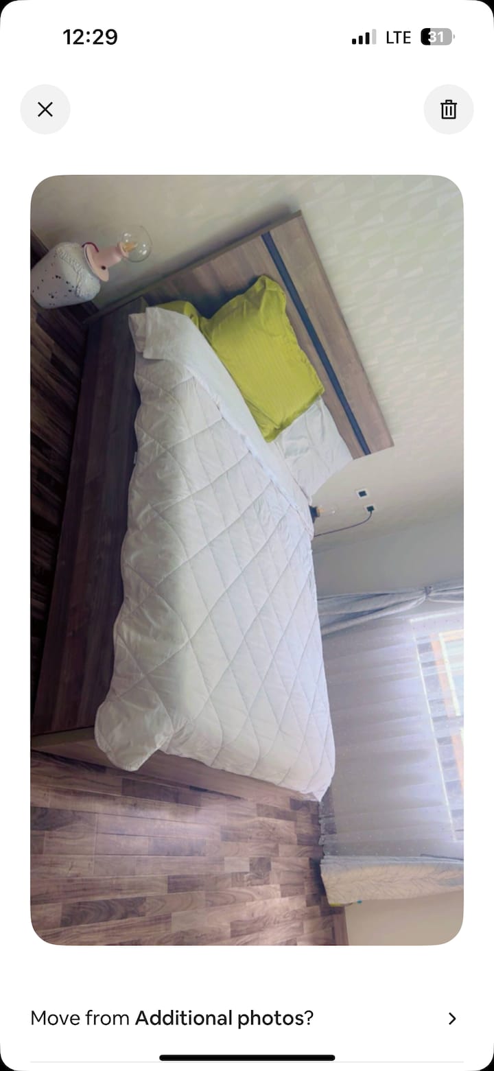 חדר פרטי אופנתי עם מרפסת, נסיעה של 15 דקות משדה התעופה