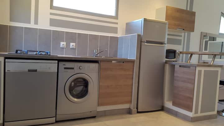 דירת סטודיו ממוזגת עם מרפסת, סיבים ואינטרנט אלחוטי.
