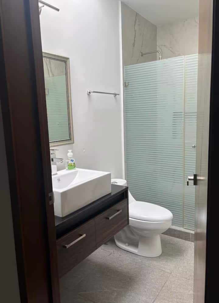 חדר עם חדר רחצה פרטי.