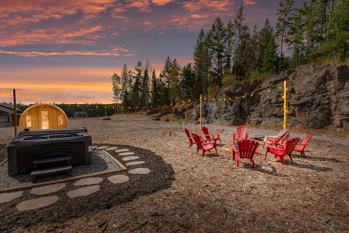 ► ליהנות מנופים מדהימים דרך חלונות עם תקרה גבוהה המשקיפים אל תוך היער, שם תוכלו לצפות בזריחה מסננת את האורנים בפרטיות מלאה. צאו למרפסת הפרטית כדי להתענג על אוויר הבוקר הצח מהספה הנעימה, או צאו לחצר האחורית לטבילה שלווה בג'קוזי. מקום לינה 2,