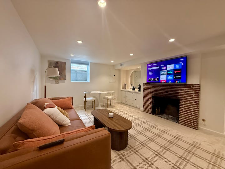 סוויטת האורחים הזו היא יחידת מרתף משופצת במלואה, עם כניסה פרטית משלה דרך החניה הסגורה. כל המרחבים המפורטים - חדר שינה, סלון, חדר הלבשה, חדר רחצה, כביסה/מטבחון - הם פרטיים לחלוטין לשהייה שלכם.