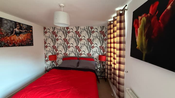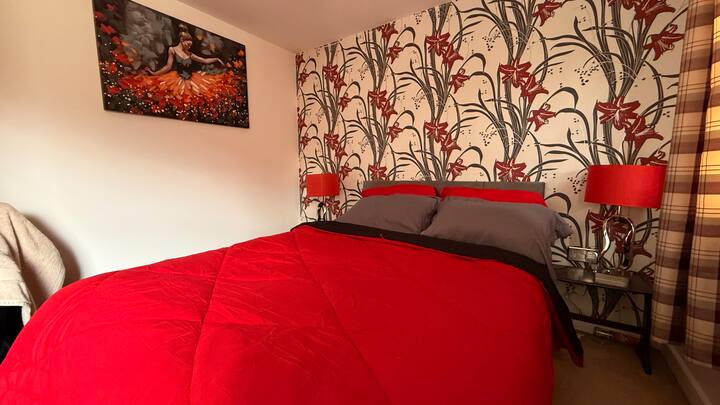 חדר יפה עם נושא אדום בבית שקט