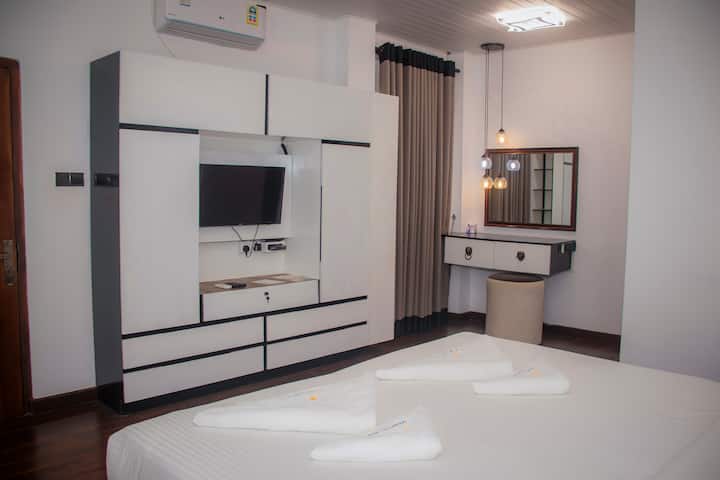 🏠 יחידת אירוח משפחתית ממוזגת עם אמבטיה פרטית ונוף לגינה, אירוח נעים בלב המשולש התרבותי של סרי לנקה, רק 2 דקות למקדש הזהב, 30 דקות לסיגיריה. אידיאלי למשפחות, חברים וחוקרי תרבות המחפשים נוחות ונוחות