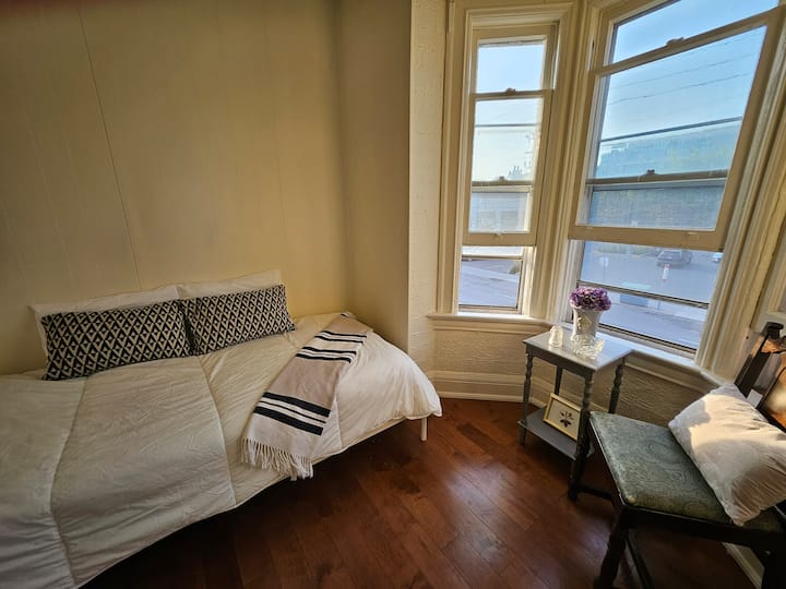שימו לב שהבית שלנו נמצא ברחוב דופונט. צפונית לנו נמצאת מסילת הרכבת של CN. הרעש הלבן הוא חלק מהקסם בבית ההיסטורי הזה שנבנה בתחילת המאהה-20. אטמי אוזניים זמינים ללא תשלום בערכת העזרה הראשונה שלנו.