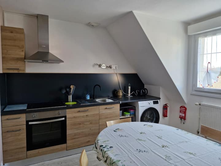 הבית הזה ממוקם בלב Pays d'Ancenis, והוא אידיאלי לנסיעות העסקים, לחופשות המשפחתיות או לסיור באזור. המיקום האסטרטגי שלו מאפשר לכם להגיע לכביש המהיר, למרכז אנסניס, למרכזי קניות ולגדות הלואר תוך 5 דקות ברכב. שני חדרי שינה בגודל 16 ו-20 מ"ר המצוידים במיטה זוגית וספה נפתחת לגדולים, יכולים להכיל 4 מבוגרים ו-2 ילדים. המטבח מצויד במלואו.
