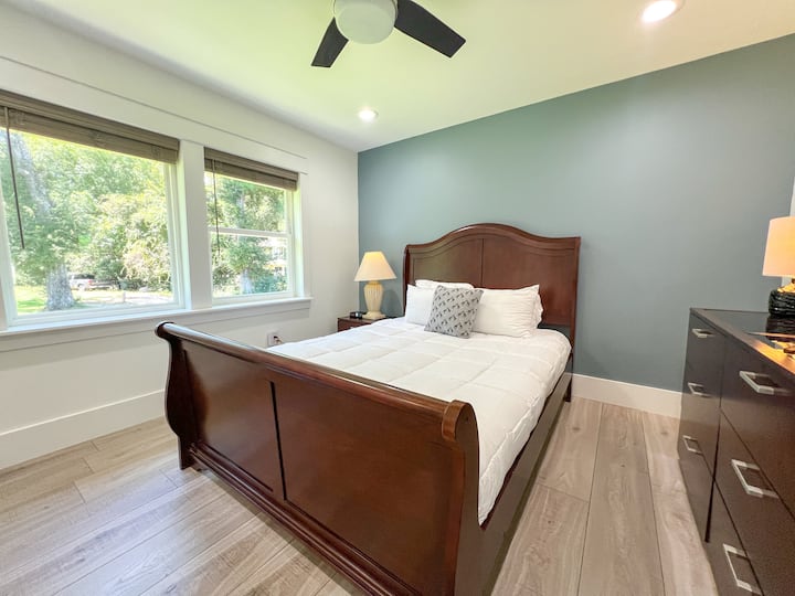Stay Cozy אין שטיח. במטבח המלא יש כלי בישול, כלים, סיר איטי, טוסטר ובלנדר, מיקרוגל, כיריים ומקרר. בחדר השינה הנעים יש מיטת קווין סייז, מאוורר תקרה, שידה וארון אחסון. בסלון יש ספה נפתחת, כורסה וטלוויזיית סמסונג המותקנת על הקיר עם רוקו לסטרימינג. המטרה שלנו היא לגרום לכם להרגיש כמו בבית.