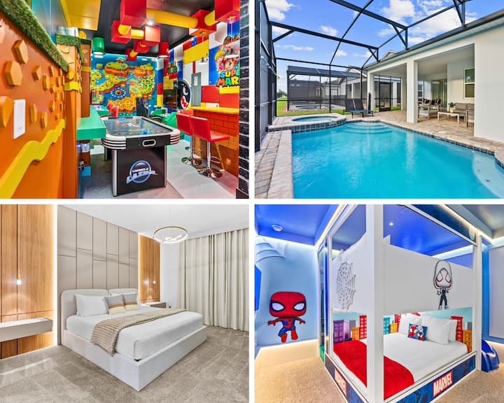בווילה המדהימה הזו, עם 6 חדרי שינה ו-5 חדרי רחצה, יכולים להתארח עד 19 אנשים. יש בה בריכה פרטית, קולנוע עם נושא של "איך לאמן את הדרקון שלך" וחדר משחקים עם נושא של מריו. תוכלו ליהנות מסוויטת קינג מאסטר וגם מחדרים כיפיים עם נושאים שונים, כולל ספיידרמן, מיקי ספארי ומלחמת הכוכבים - אידיאלי למשפחות ולחופשות קבוצתיות בלתי נשכחות.