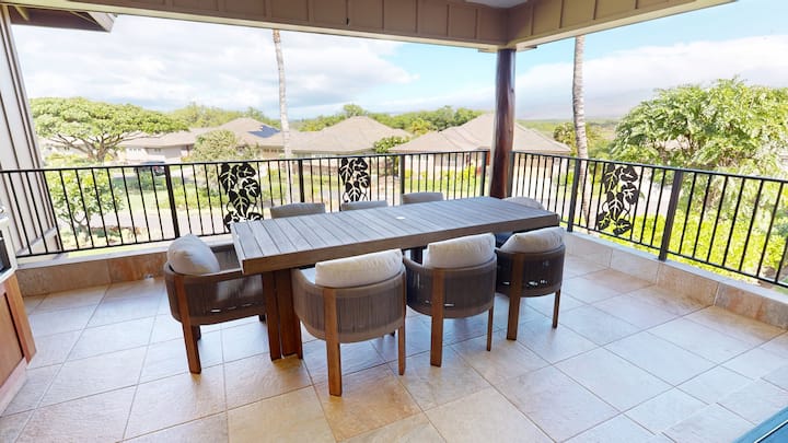 צאו למרפסת כדי ליהנות מארוחה בחוץ ונופים מדהימים של מגרש הגולף מאונה לאני והרי קוהאלה הרחוקים.