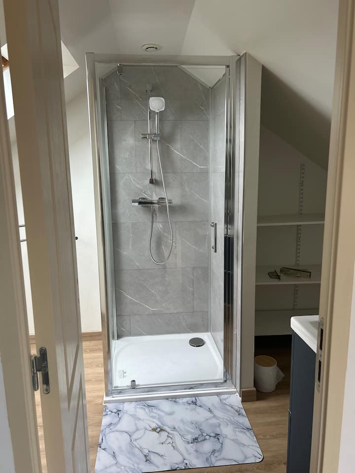 חדר אצל משפחה עם חדר רחצה פרטי.