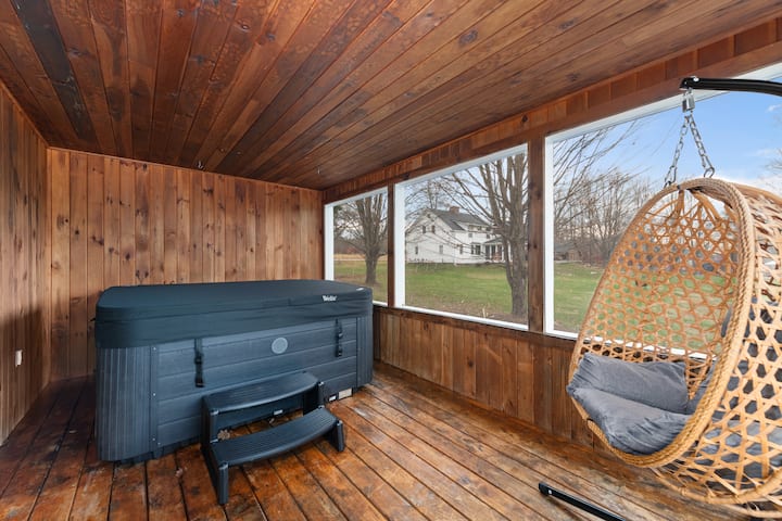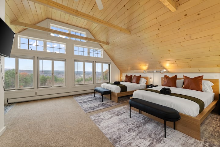 White Mtn עם נוף ל-VT, ג'קוזי, מדורת גן וחדר משחקים