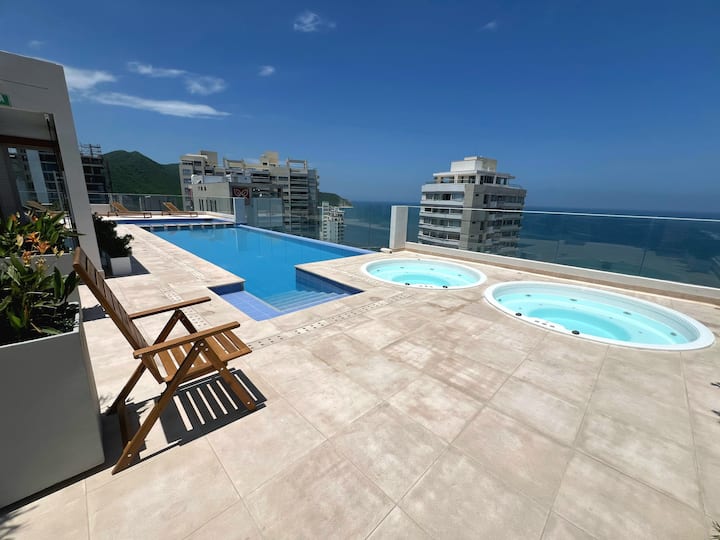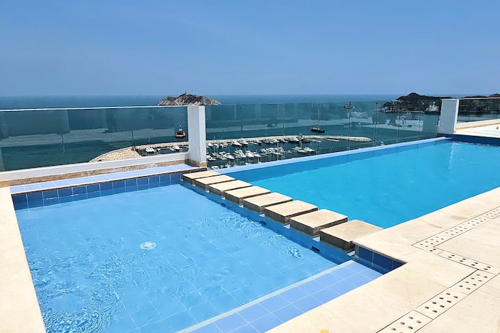 ליהנות מחופשה מסוגננת במקום המרכזי הזה. לדירה יש מיקום מעולה במרכז העיר סנטה מרתה. 2 דקות הליכה ללה מרינה (סיורי סירות), 5 דקות הליכה למספר מסעדות ובתי קפה, 8 דקות הליכה לפארק דה לוס נוביוס ולמרכז ההיסטורי. תיהנו מכל שקיעה בצבעי סגול וורוד מהמרפסות הפרטיות שלכם. ליהנות מנוחות מודרנית ביעד החופי הבהיר והמעוצב בקפידה. חניה פרטית ובניין עם כניסה מאובטחת 24 שעות ביממה.