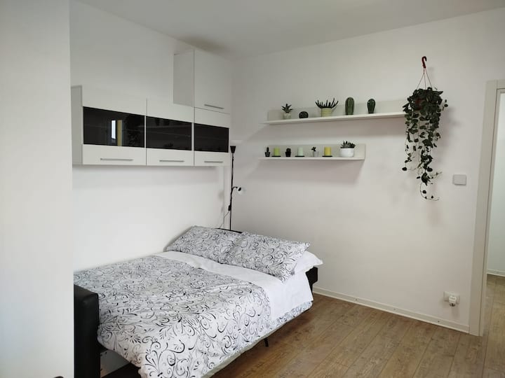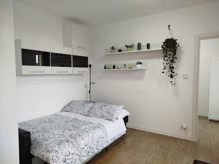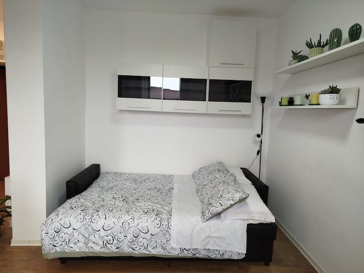 דירה מודרנית הממוקמת באזור יפה על שפת הים במרחק הליכה קצר מהמרכז ההיסטורי של מוג'יה. הדירה נמצאת בקומה הרביעית של בניין ששופץ לאחרונה ללא מעלית. היא מתאימה לכולם: משפחות, זוגות, אנשים שמחפשים שלווה ואנשים שרוצים לחוות את האווירה המוגסיאנית. בפנים יש 2 חדרים גדולים, אחד זוגי והשני יחיד, מטבח מלא, חדר רחצה וסלון קטן עם ספה נפתחת לשני אנשים.