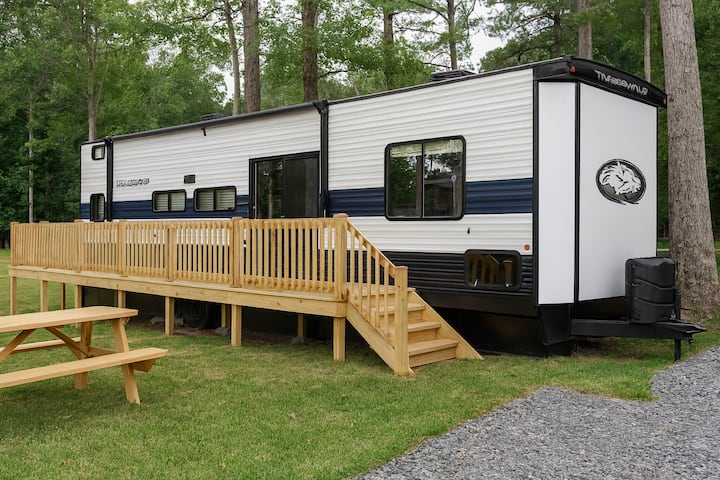 בקתת אוכמניות מציעה את הקסם של קמפינג עם כל הנוחות של הבית. בקרוואן Timberwolf המרווח הזה יש מקום ל-7 אנשים עם מיטת קווין סייז אחת, ספה נפתחת אחת ו-4 מיטות קומותיים בגודל מיטה נפתחת. בפנים תמצאו מטבח מאובזר עם מכשירי חשמל וכלי אוכל, ומזרן יוקרה בחדר השינה הראשי.