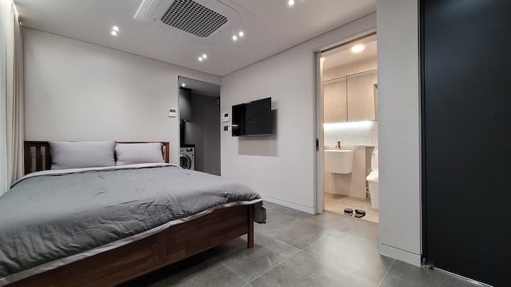 [מבצע מיוחד לכבוד ראש השנה הקוריאנית] אזור דונגגו ליד תחנת נאמסאן עם מיטת קווין סייז, אפשרות לצפייה במספר רב של ערוצי OTT
