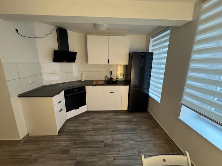 דירה מודרנית עם מרפסת ומטבח בליבק