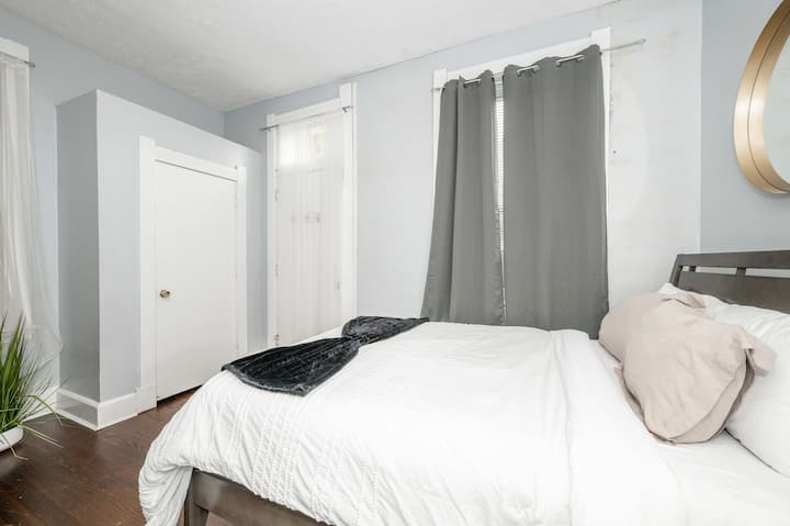 • הבית הזה הוא יחידה אחית ליחידה למעלה, Queen City Suites 2. אורחים עשויים לראות אורחים אחרים של הבניין נכנסים ויוצאים. אנחנו ממליצים לקבוצות גדולות יותר להזמין את היחידה המשולבת, Queen City Suites, המורכבת משתי הדירות.