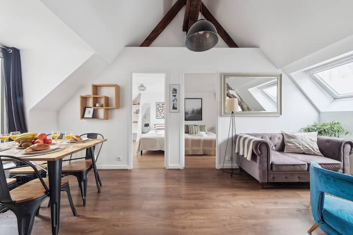 תיהנו משהייה בלב אזור הרובע הלטיני של פריז עם דירת 3 חדרי שינה מקסימה זו, 60 מ"ר הממוקמת בקומות 4 ו-5 של בניין מגורים מאובטח ללא מעלית. צ'ק - אין עצמי החל מהשעה 15:00 על ידי איסוף מפתחות בחנות סמוכה. אינטרנט אלחוטי זמין, נהדר גם לעבודה וגם לפנאי. נדרש פיקדון הנזק, בהתאם למדיניות של Airbnb.