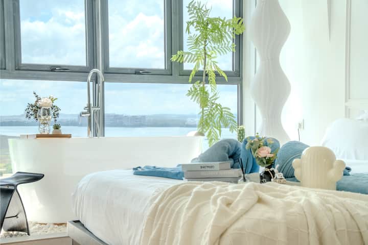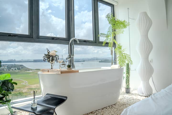 תוכלו להירגע וליהנות מטבילה באמבטיה בחדר השינה הראשי עם נוף לים!