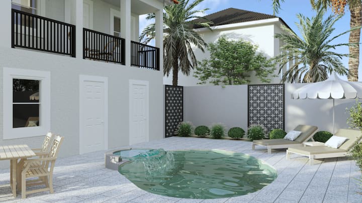 בחוץ, תוכלו ליהנות מהבריכה המחוממת הפרטית ומהג'קוזי עם כיסאות השיזוף שמסביב. בסמוך לאזור הבריכה יש גריל ומרחב ירוק מקסים למשחקים או לבילוי!