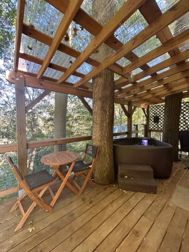 כל הבית על העץ והשירותים שלו לאורח בחוץ זמינים להנאתכם!