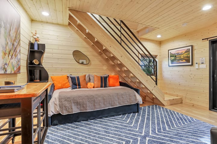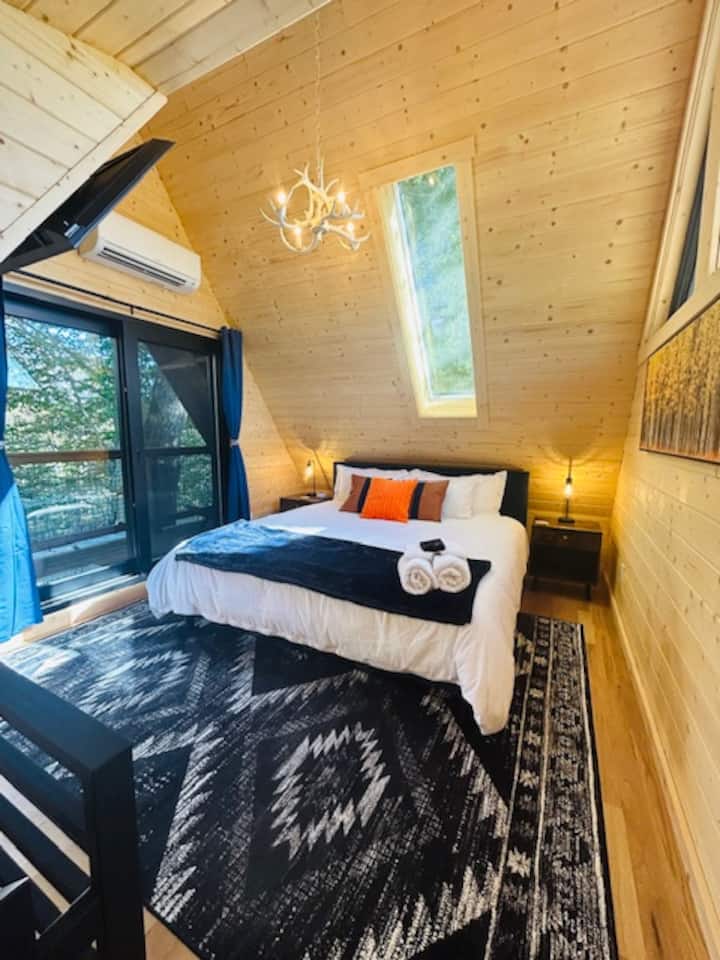 הסיעו את עצמכם לחופשה אלפינית שלווה מבלי לעזוב את אוהיו. בית העץ של אספן משלב אלגנטיות של בקתת סקי בקולורדו עם קסם כפרי, וכולל כניסה ייחודית עם גשר נשלף ומרפסת תצפית מושלמת ללגימת יין או לצפייה בחיות בר מקומיות. גימורי עץ חמים ומרקמים רכים ומזמינים יוצרים מפלט נעים בהשראת ההרים - אידיאלי לכל מי שמחפש התחלה חדשה ושקטה.