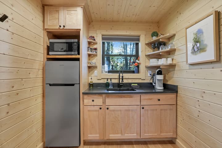 בפנים, חדר האמבטיה בהשראת הספא מציע מקלחת רחבת ידיים ומוצרי רחצה על חשבון הבית כדי לשמור על השהייה שלכם ללא מאמץ. המטבחון המאובזר כולל מכונת קפה Keurig, מקרר בגודל דירה, מיקרוגל, פלטה חמה וכלי בישול, כך שתוכלו להכין ארוחות בקלות במהלך השהייה. צאו החוצה והדליקו את מחבת הבלאקסטון בגודל 22 אינץ' כדי להכין פנקייקים לארוחת הבוקר או לארוחת הערב תחת כיפת השמיים.