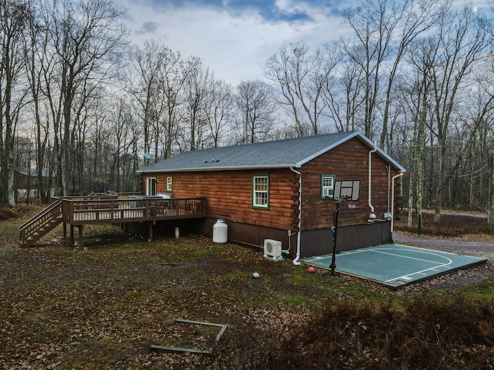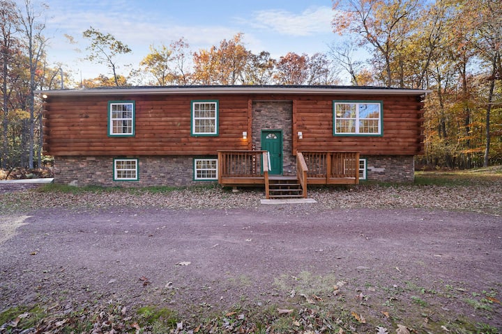הבית בסגנון בקתה בן 6 חדרי השינה נמצא במיקום מעולה ויש בו את כל מה שצריך כדי ליהנות מחופשה מדהימה בפרילנד, פנסילבניה!