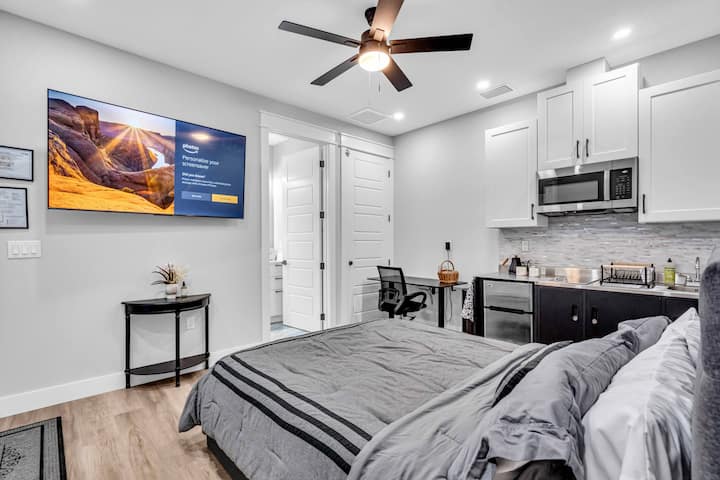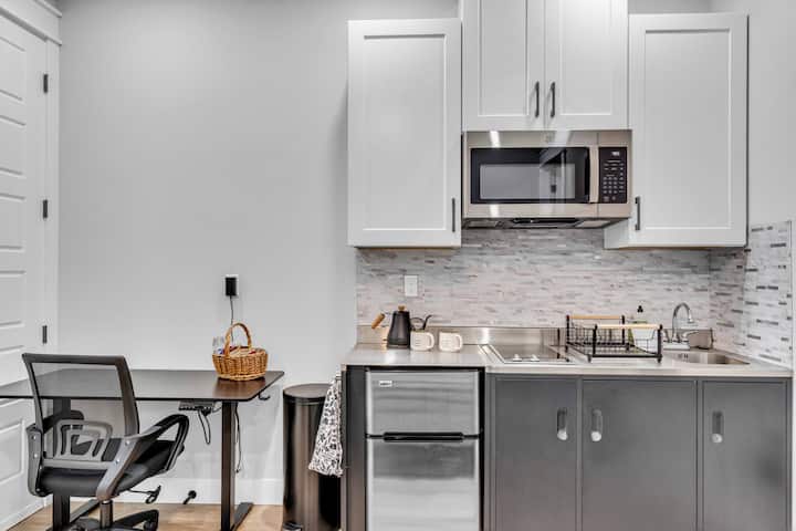 דירת סטודיו אופנתית עם פטיו פרטי, שבה יכולים לישון 2 אנשים