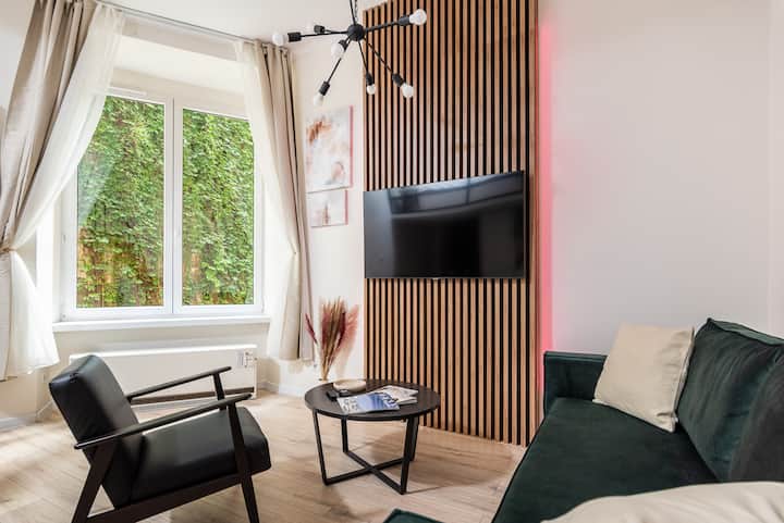 ✨לופט מעוצב בבניין היסטורי בקרקוב, שבו נוחות מודרנית פוגשת קסם נצחי 🏛️🌿