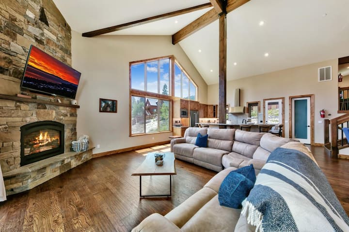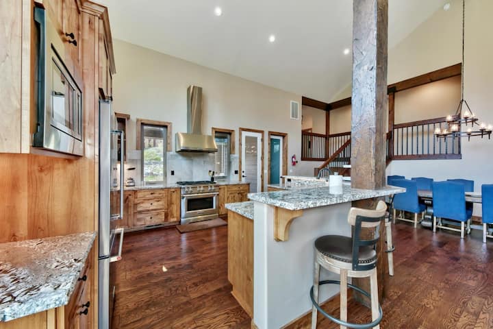 כשאתם נכנסים לחדר הגדול, העיניים שלכם ימשכו לתקרה המקומרת הגבוהה, קורות עץ ישנות, אבן סביב אח הגז והרבה חלונות כדי ליהנות מהנופים. הקומה הראשית הזו כוללת את הסלון עם טלוויזיה עם מסך שטוח, מטבח מאובזר היטב ושולחן אוכל גדול מספיק כדי להכיל את המשפחה (10 מקומות ישיבה). יש גם כיסא אוכל לתינוק.