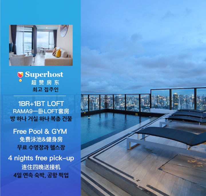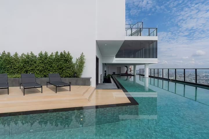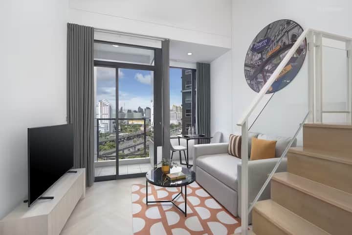 Rama9 דירת חדר שינה אחד עם מרפסת 35 מ"ר LOFT4/לינה 3 אנשים/בריכת שחייה על הגג/ליד RCA/ליד שוק לילה רכבת/ליד טונגלור