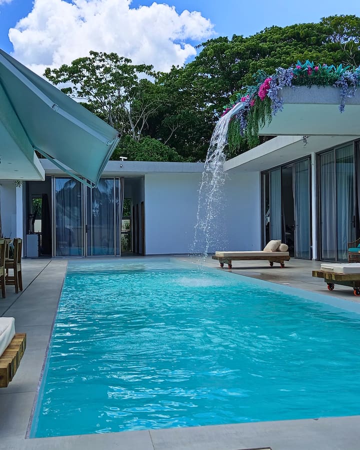 סוויטת דלוקס עם חדר רחצה ומיזוג אוויר בווילה עם בריכת שחייה