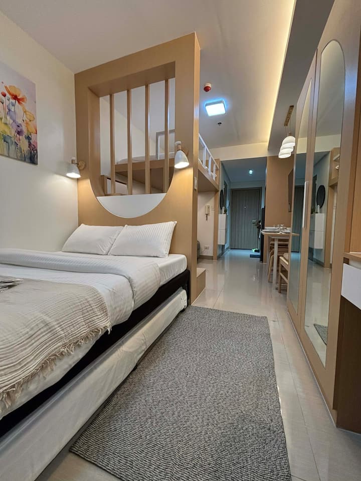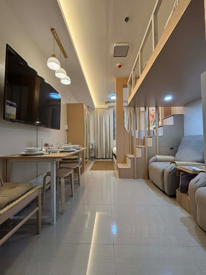 לברוח מהעיר בלי לעזוב אותה. בואו לבלות יום - או להישאר יותר זמן - ביחידה הנעימה שלנו ב-Peak of Shore 2 Tower 1, שם תוכלו להתעורר לנופים מדהימים של הבריכה, סטאר סיטי והניצוצות של גורדי השחקים שמסביב. תיהנו ממיטת לופט ללילות שלוים, שתי ספות נפתחות קטיפה לצפייה בסרטים, מערך טלוויזיה גמיש, שולחן אוכל מתקפל לחיסכון במקום, מרפסת פרטית לנשימה + אינטרנט מהיר ורגוע לעבודה או למשחק.