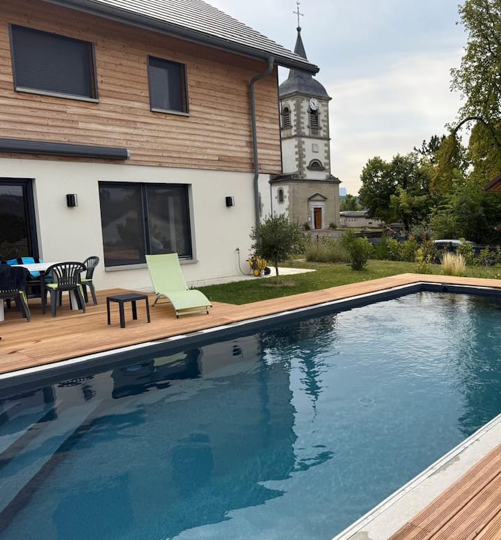 בית אדריכלי עם בריכת שחייה אנסי-ז'נבה