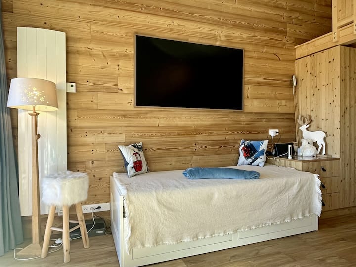 דירת הסטודיו המקסימה והמאובזרת הזו מציעה פריסה פונקציונלית ואווירה חמה. ממוקמת בקומה הראשונה של המגורים, היא נהנית מאור טבעי יפהפה ונוף פנורמי מהמם מהסלון ופינת האוכל. קוקון קטן ונעים, מושלם לחופשה בהרים.