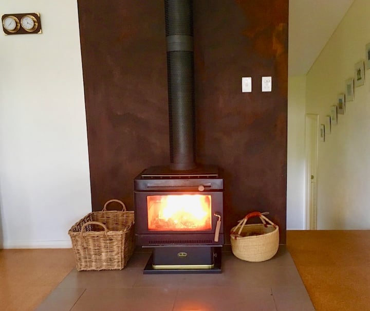 מיזוג אוויר מחזור הפוך בקיץ, שני תנורי עמודה חשמליים, אח עצים חמימה בחורף ושפע שמיכות רזרביות הופכים את הבית הזה למפלט אידיאלי ונוח בכל עת בשנה.