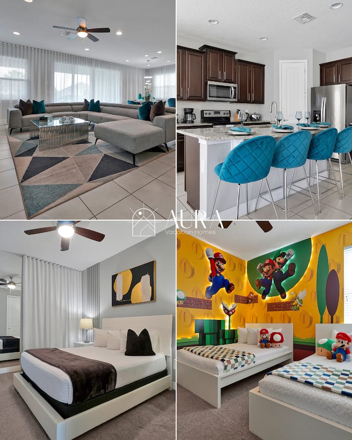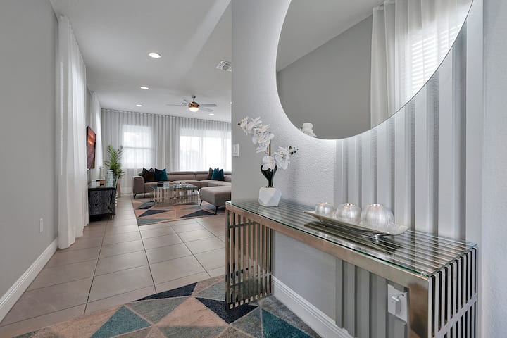 הבית הזה בגודל 2,570 רגל רבוע | 239 מ"ר הוא בית דו-קומתי מושלם למשפחות עם ילדים או לקבוצות המטיילות יחד בבירת החופשות של העולם כדי לבקר בדיסני ובפארקי השעשועים שמסביב.