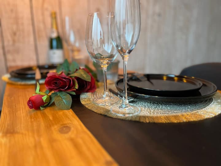 שולחן גבוה לארוחת ערב רומנטית או לערב אינטימי.