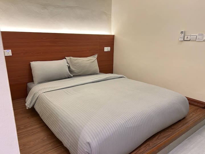 De Benz Inn (F225) חדר שינה עם מיטת קווין סייז וחדר רחצה