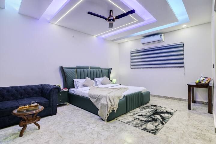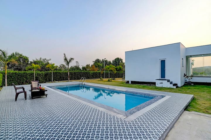 ◆ בין שדות זהב, אתם מוזמנים לנופש כפרי עם 4 חדרי שינה, חדרי שינה מוארים ונופים של גבעות אראוולי.