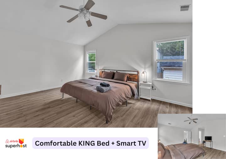 מיטת קינג סייז | מטבח מאובזר, כביסה + כניסה פרטית