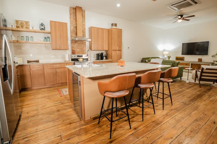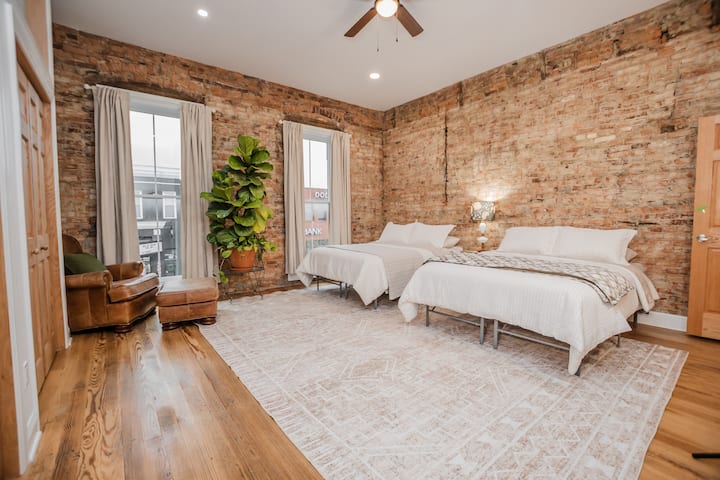 תיהנו מלבנים חשופות, רצפות עץ קשיח מקוריות, עיצוב אמנותי ופריסה פתוחה ומוארת עם מטבח מאובזר היטב ואי גרניט עם מקומות ישיבה. חדר השינה המרווח כולל שתי מיטות קווין סייז עם מצעים יוקרתיים. ללכת ברגל למסעדות מקומיות, בתי קפה, חנויות ונקודות ציון היסטוריות - המפלט הנעים שלכם במרכז העיר מחכה לכם.