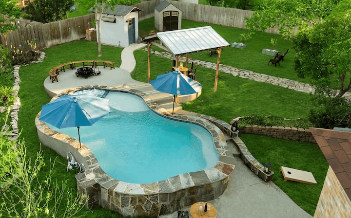אלמסטד הוא מקום המפלט שלכם בסן אנטוניו - מקום מפלט בעל ארבעה חדרי שינה מעוצב בקפידה עם בריכת שחייה מחוממת, ספא, ארקייד וינטג' ותיאטרון חיצוני. הבית מושלם למשפחות, לקבוצות ולנוסעים מטעם החברה, ויכול להכיל 11 אנשים בנוחות עם Wi-Fi מהיר, חללים ידידותיים לחיות מחמד וחצר מגודרת במלואה עם לול ייעודי לחיות מחמד. משולחן הפוקר הדו-תכליתי ועד לערבי המדורה, כל פרט נועד למי שמסרב להתפשר.