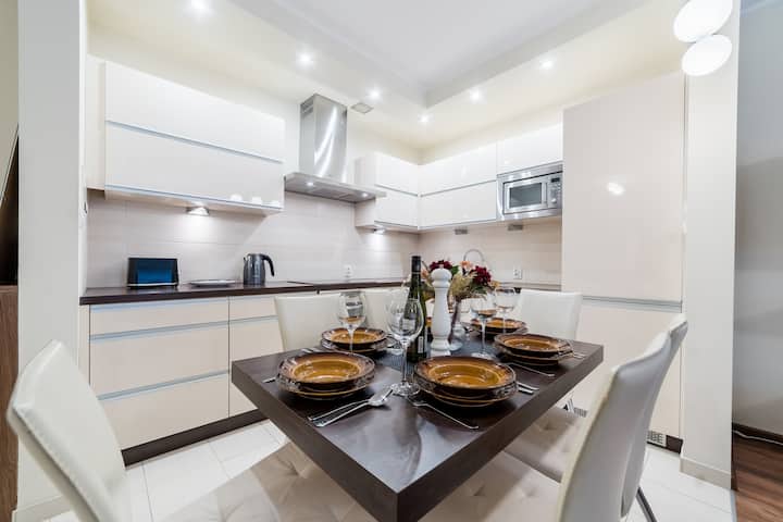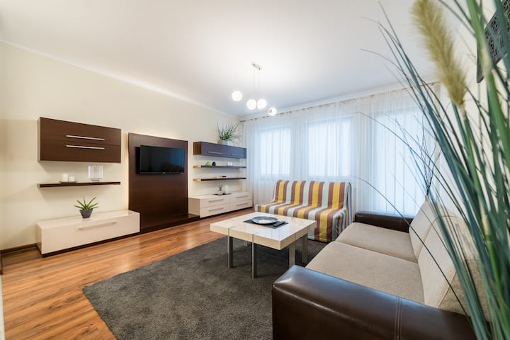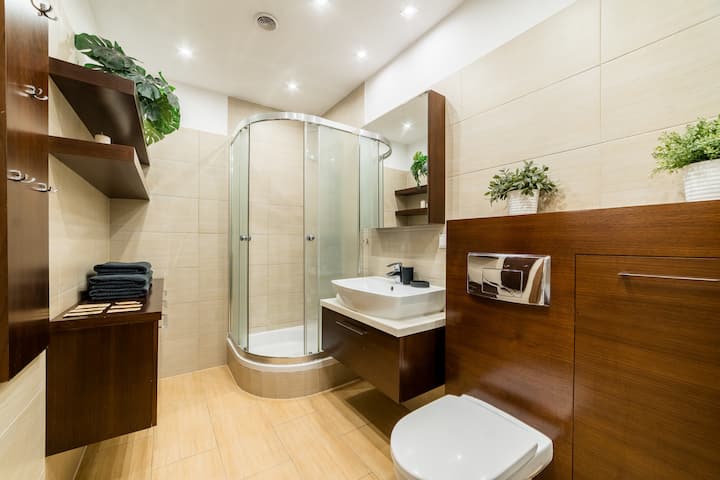 דירה נוחה זו בגודל 57 מ"ר בקומה השלישית מציעה שהייה מצוינת עבור עד 5 אורחים, עם מיטת קווין סייז ושני ספות נפתחות בשני חדרים מרווחים. ממוקמת במרחק הליכה מהעיר העתיקה המקסימה של פוזנן, היא מהווה בסיס אידיאלי לביקור באתרים ולמנוחה. המרפסת הפרטית משקיפה על האחוזה הפנימית השקטה, ויוצרת מקום שקט שבו אפשר להירגע אחרי יום של סיורים. האורחים יעריכו את שולחן העבודה הייעודי, את רשת ה-Wi-Fi המהירה ואת הטלוויזיה החכמה, מה שהופך את הנכס למקום שמתאים לפנאי או לעבודה מרחוק. מטבח מצויד היטב וחדר רחצה מודרני מבטיחים שהייה נוחה, בתוספת ערכת מוצרי רחצה, מגבות, קפה ותה. עם צ'ק-אין/צ'ק-אאוט עצמי ותחנת הרכבת הקרובה ביותר במרחק 500 מטר בלבד, ההגעה והיציאה שלכם קלות. ניתן להשתמש בחשבוניות מע"מ לפי בקשה.