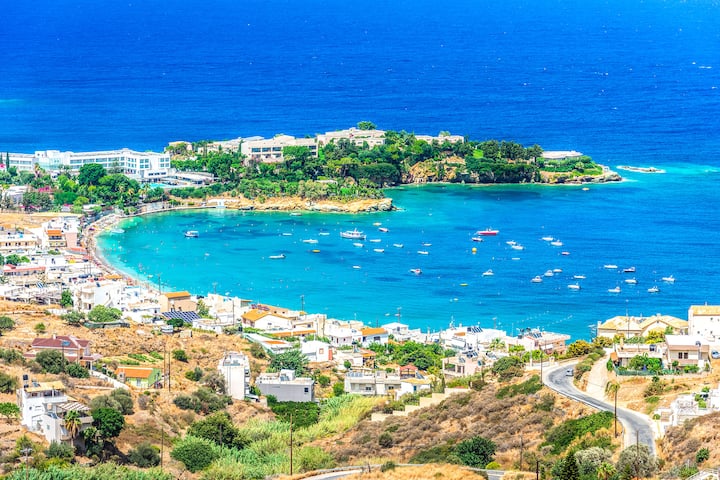 🏖 חוף אגיה פליגיה – 2.5 ק"מ (נסיעה של 5 דקות)
