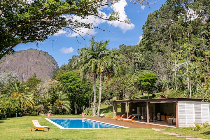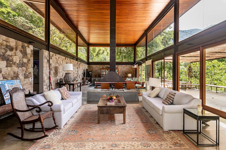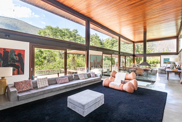 באררס, אחד האזורים היוקרתיים ביותר בפטרופוליס, נראה שהבית הזה הותאם בקפידה לנוף. הארכיטקטורה שלה משלבת עץ, זכוכית וברזל בצורה מדויקת, ויוצרת נווה מדבר של פרטיות מוחלטת, שבו נוחות, טבע, אמנות ותרבות נפגשים באיזון.
